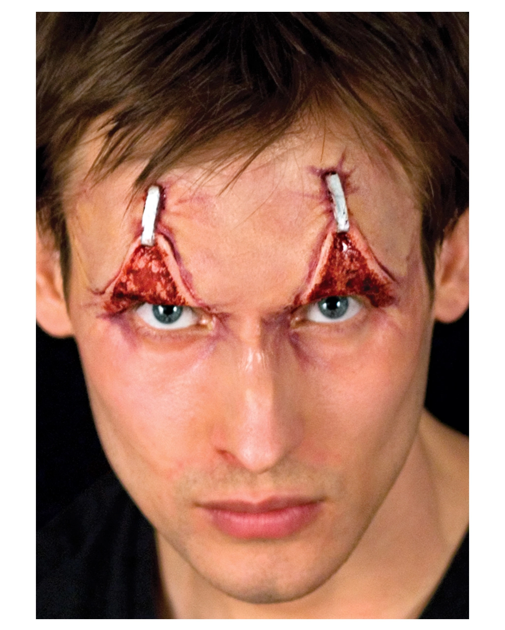 Neben deinem Kostüm ist dein Make-Up ein super wichtiger Bestandteil deiner Halloween Verkleidung. Wenn du es zu Halloween möglichst blutig haben möchtest dann benutze eine krasse Latexwunde wie z.B. unsere Augenlidstrafungswunde. Einfach mit etwas Hautkleber aufkleben, mit Make-Up & Filmblut kaschieren und fertig ist das Horror Make-Up!