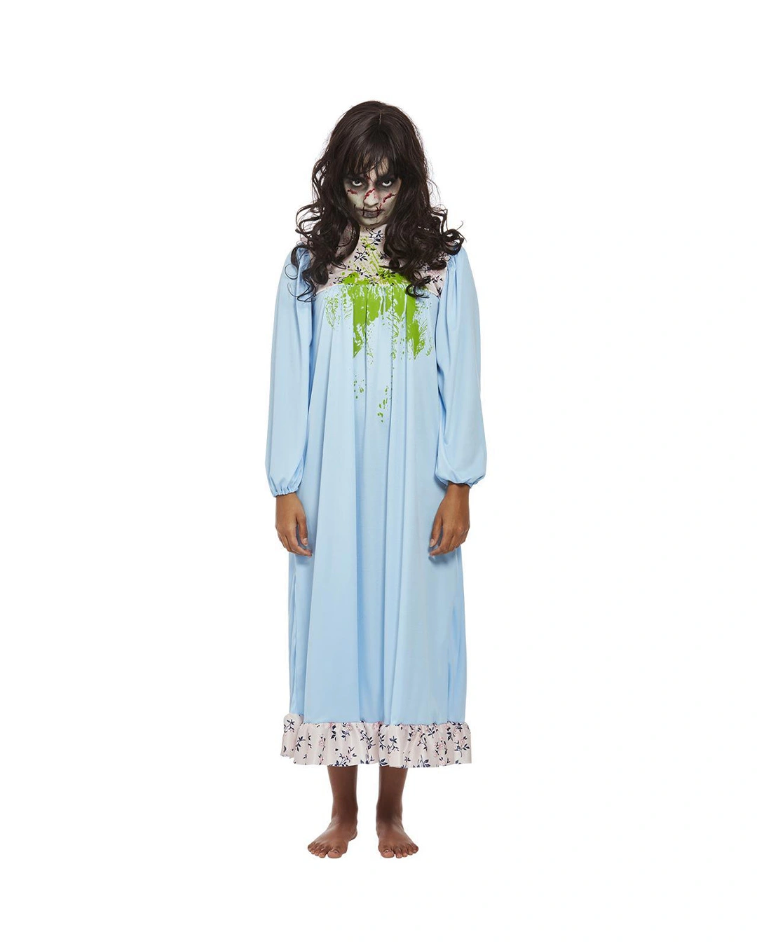 William Peter Blatty, löste mit seinem 1973 erschaffene Horrorfilm “Der Exorzist” weltweit Begeisterung aus. Die Story um ein vom Dämon besessenes Mädchen ist der Stoff aus dem Alpträume gesponnen werden. Vor allem die grotesken Szenen mit der besessenen Megan sorgen beim Zuschauer für Gänsehaut. In Anlehnung an den Horror-Schocker bekommst du unser Besessenes Mädchen Damenkostüm in Form eines Nachthemdes mit einem Fleck Erbrochenem. Die eklige Halloween Verkleidung für Frauen ist ideal, um dich am 31. Oktober einem Exorzismus zu unterziehen!