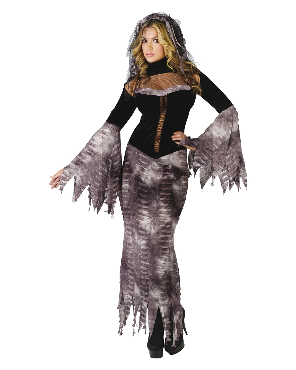 Das Black Widow Kostüm ist ein tolles Damenkostüm und wirkt zusammen mit Halloweenl Make Up wie Aquacolor Weiss 30ml und dem Schwarz / Weiß Make Up Set noch unheimlicher. Das grau schwarze Witwenkostüm besitzt lange Trompetenärmel und Fetzensäume sowie einen grauen Schleier als Halloween Kopfschmuck. Weitere Halloween Frauenkostüme wie das Braut der Finsternis Kostüm M/L findet ihr hier im Horror Shop.