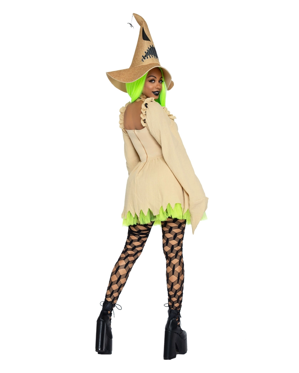 Sexy Scarecrow Kostümkleid mit Hut, Halsband & Spinnen Details