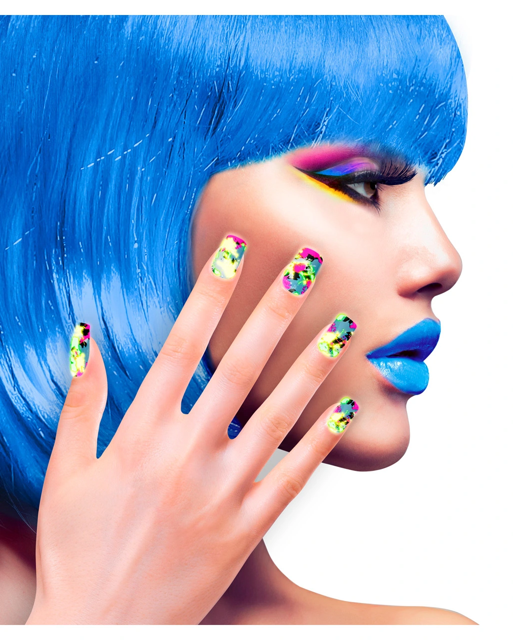 Schrille, selbstklebende Neon Fingernägel im 80er Jahre Techno Style