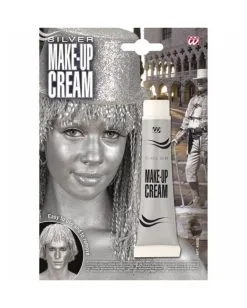 Mit dem Creme Make Up Silber verwandelst du dich in veschiedeneste Charaktere. Egal ob als Roboter und Außerirdischer zum Karneval und Terminator zu Halloween. Das Spezial Make Up wir ganz einfach mit dem Finger oder einem Schwämmchen aufgetragen und lässt dich silbern erglänzen.