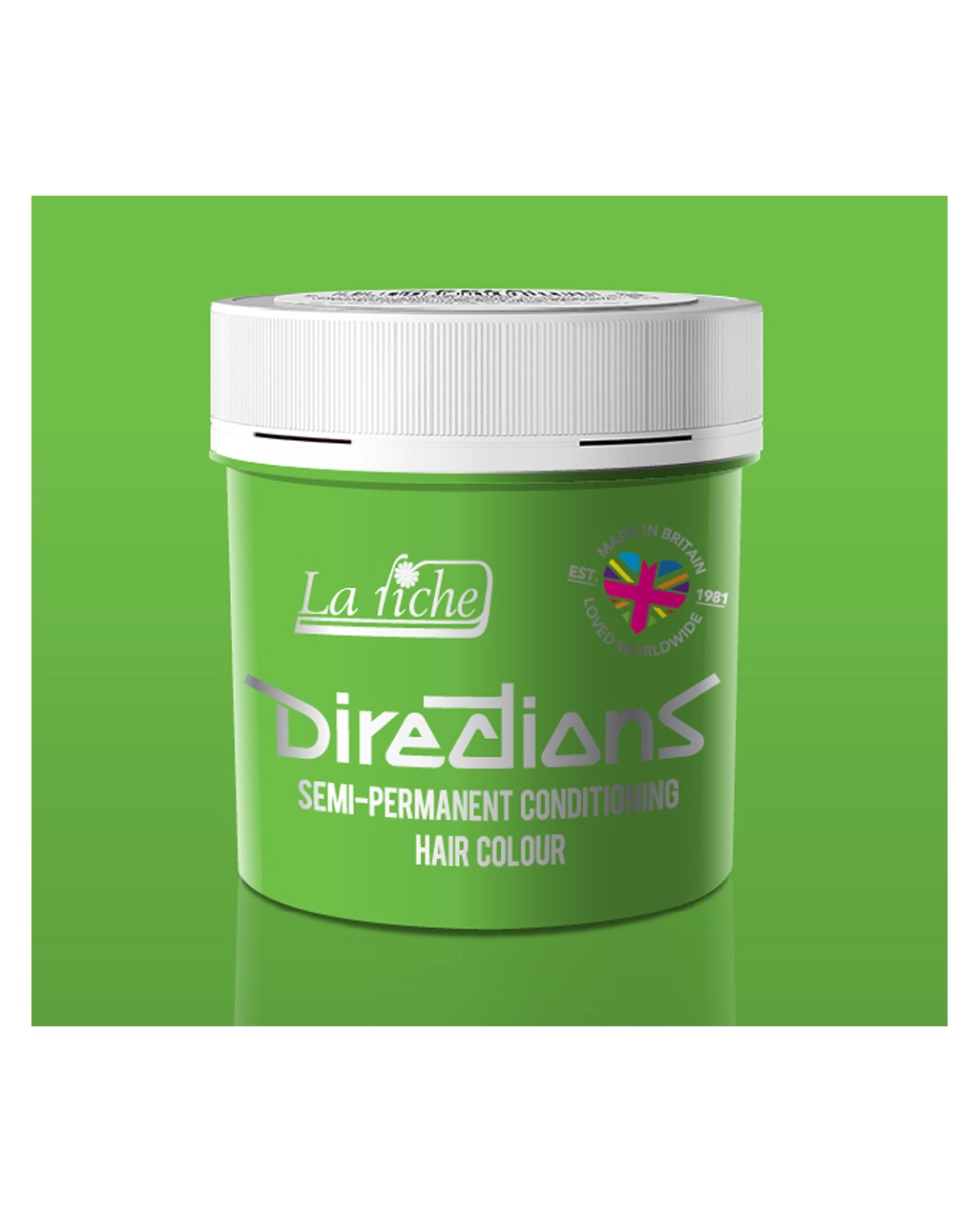 Die Spring Green Tönungscreme sollte möglichst auf blondiertes oder gesträhntes Haar aufgetragen werden, um ihre komplette Leuchtkraft richtig entfalten zu können. Die 89ml Dose mit der giftgrünen Haartönung besitzt einen praktischen Schraubverschluss. Die direktziehende Tönung auf gewaschenes, handtuchtrockenes Haar auftragen und mit einem Kamm durchkämmen, somit wird ein gleichmäßiges Farbergenis garantiert. Nach einer Einwirkzeit von 15 – 30 Minuten sorgfältig ausspülen und mit dem Directions Farbschutz Conditioner versiegeln. Als Highlight kannst du ein Flamingo Pink Directions Dip Dye machen.