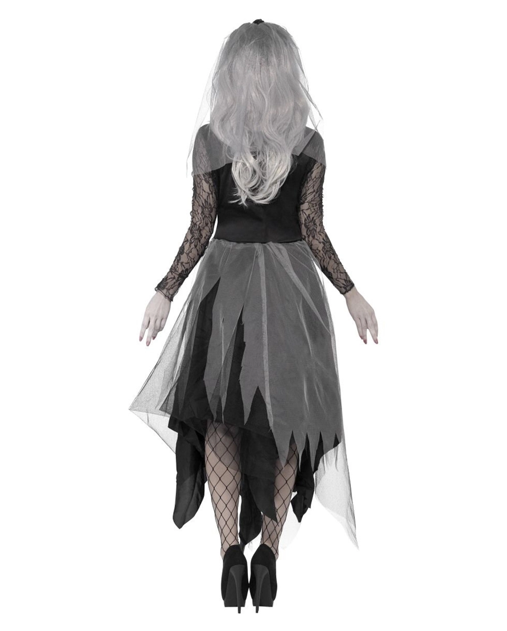 Bis dass der Tod euch scheidet? Von wegen! Suche mit unserem Friedhofs Braut Kostüm mit Rosenschleier als Geist verkleidet die Lebenden heim auf den anstehenden Halloween Feiern und schaurigen Mottopartys!