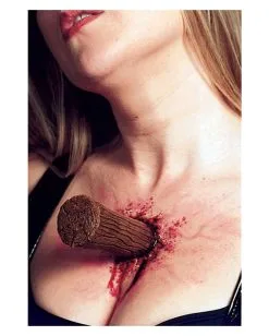 Schon Dr. Van Helsing wusste den Holzpflock als Waffe gegen Vampire und die Armee der Blutsauger von Graf Dracula einzusetzen. Mit der Holzpflock Latexwunde kannst du dich jetzt als Vampir schminken, der den Kampf mit einem Vampirjäger überlebt hat. Bringe den Holzpflock als Latexapplikation dazu an einer anderen Stelle, als über dem Herzen an, sodass der Angriff des Vampirjägers praktisch fehlgeschlagen ist. Die Latexapplikation ist ein fantastischer Spezial Make-up Effekt für Cosplay, Larp und Halloween.