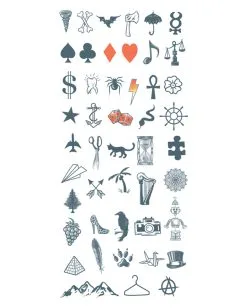 Die vielen starken Motive des Klebetattoo Set für die Finger – Symbole lassen keine Wünsche offen. Die schwarze Katze für die Hexe oder die Spinne für den Arachnophobiker Alptraum, deine Fake Tattoos sind auf jeder Kostüm Party ein echter Hingucker. Ganze 47 verschiedene Bilder und Symbole kannst du die ganz leicht “auftätowieren”, ohne dass du dazu eine schmerzhafte Nadel brauchst.