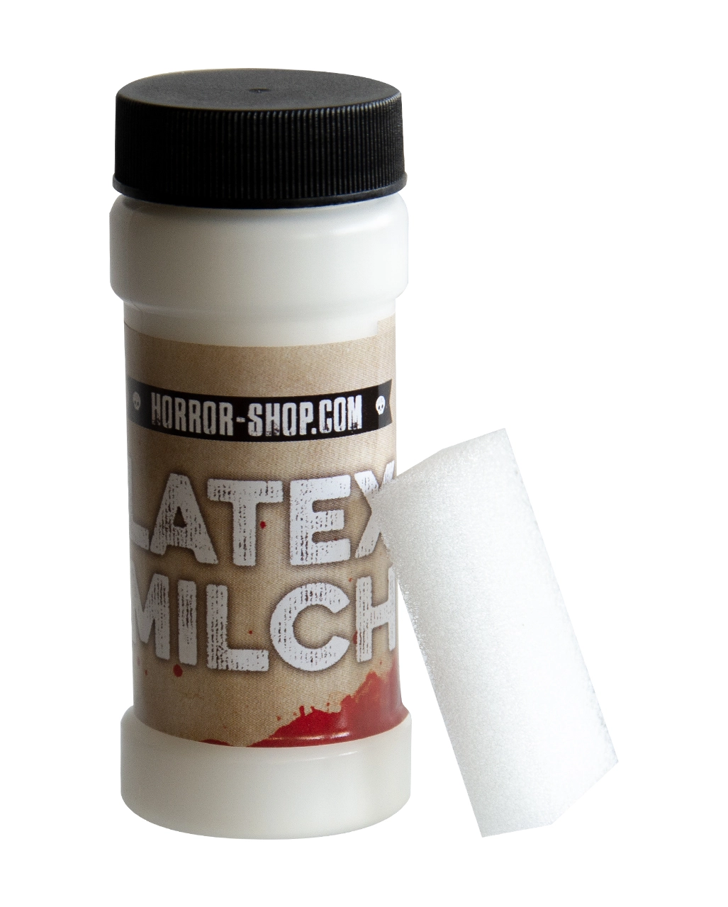 Gestalte jetzt mit der Horror-Shop Latexmilch 56ml mit Schwamm grandios aussehende Halloween SFX Make-up Effekte, wie du sie sonst nur aus Hollywood & Horrorfilmen kennst. Mit unserer Latexmilch, lassen sich Übergänge von Latexwunden kaschieren, Glatzenfolien ankleben & selbst widerliche Latex-Applikationen kreieren. Die Latexmilch ist im Bereich Effekt-Make-up besonders für gruselige Zombiehaut und schrecklich aussehende Wunden geeignet!