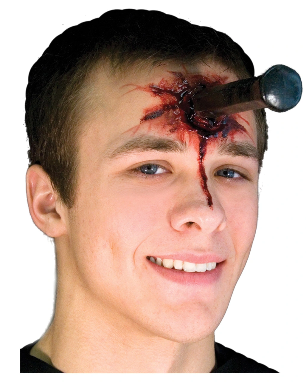 Schminke mit der Metall Pflock Latexwunde ein derb aussehendes Spezial Make-up. Ganz gleich, ob Halloween, Cosplay Event oder Liverollenspiel, die eindrucksvolle Latexapplikation hilft dir bei deiner realistischen Unfalldarstellung. Nicht nur Vampire und Zombies fürchten einen Pflock in ihrem Körper, auch als Bauarbeiter oder Mordopfer ist es nicht lustig, mit einem Metall Pflock als Todesursache in Kontakt zu kommen.