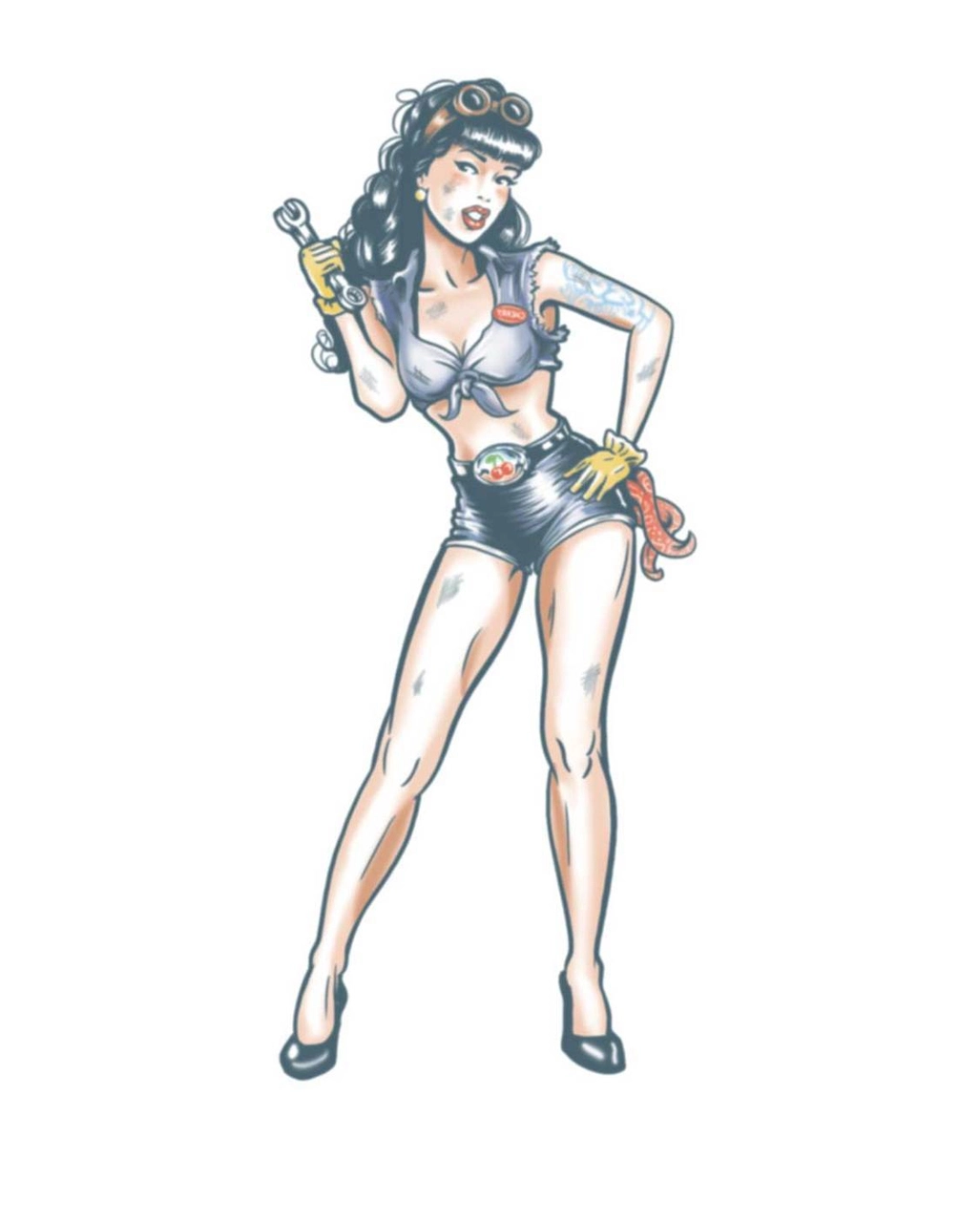 Tätowiere dich mit unserem Pin Up Klebetattoo Sexy Mechanic ganz ohne schmerzhafte Nadel und vervollständige deine Verkleidung an Halloween und auf Mottopartys!
