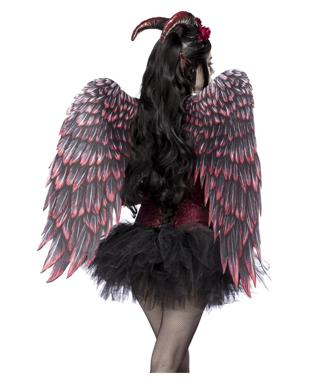 Fantastisch aussehendes Gothic-Teufelin Kostüm mit bedruckten Flügeln
