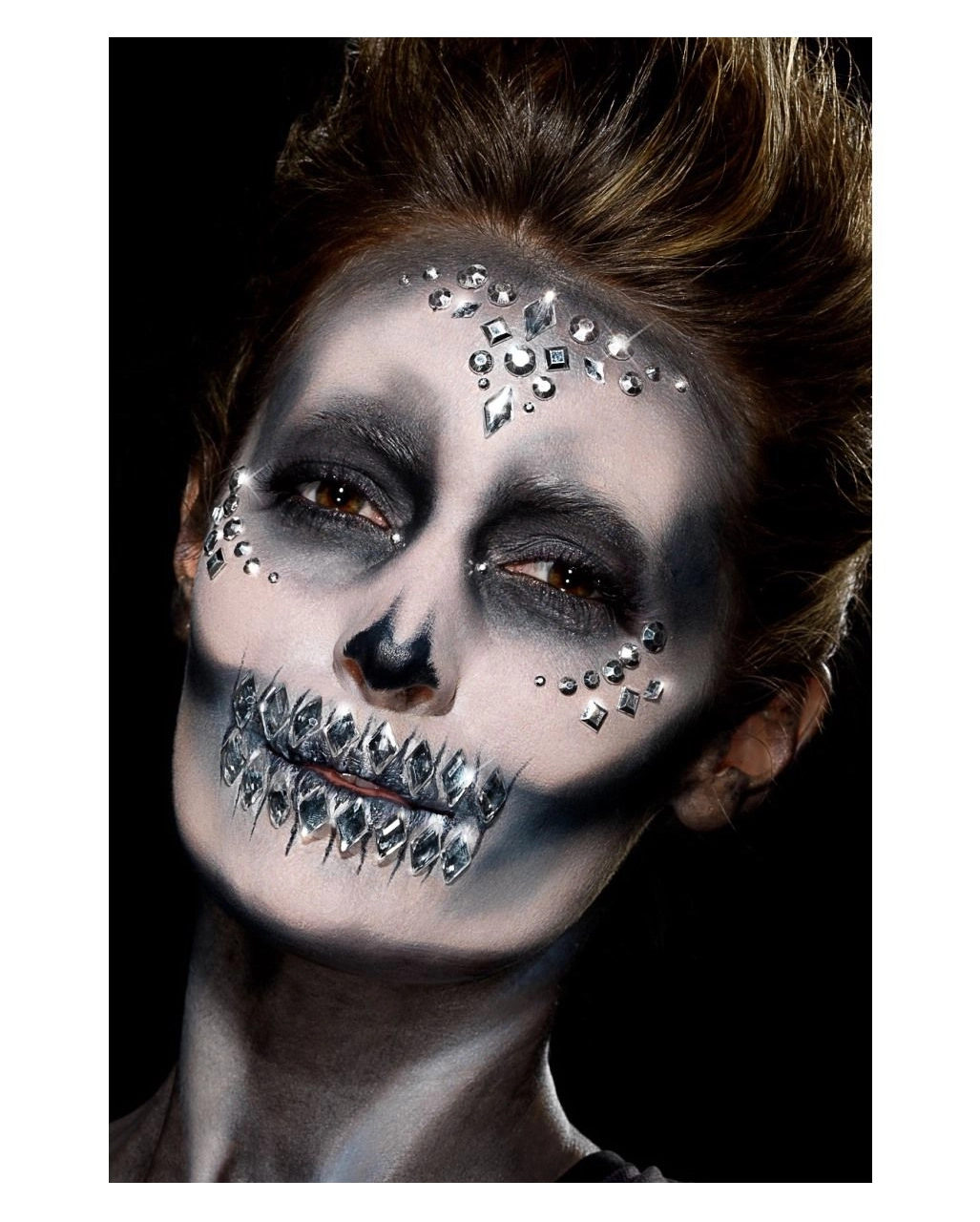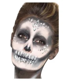 Silberne Edelsteine eckig 100 St. kommen als kleine, selbstklebende Diamanten und schmücken dein Gesicht. Du benötigst keinen zusätzlichen Hautkleber oder ähnliches. Klebe sie einfach an die Stelle, deiner Wahl und bring dein Gesicht mit den eckigen Glitzersteinen zum funkeln. Für einen außergewöhnlichen Effekt kannst du die Gesichts Glitzersteine mit dem Day of the Dead Schmink-Set kombinieren