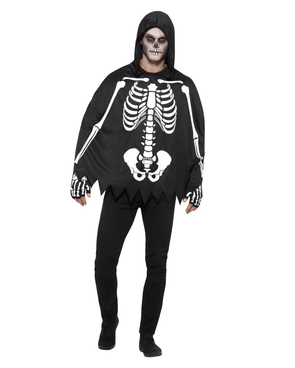 Skelett Poncho Unisex mit Handschuhen