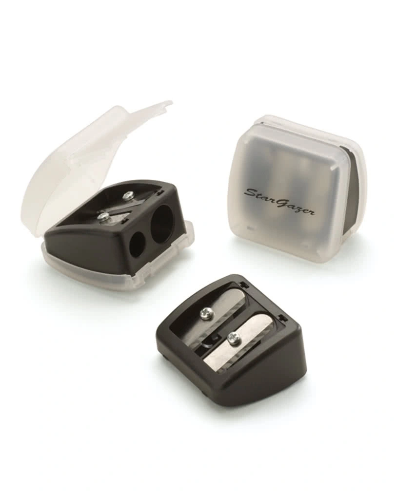 Der Kosmetik Spitzer besteht aus einem schwarzen Anspitzer für zwei verschiedene Stiftgrößen. Drum herum ist ein Gehäuse gebaut, in dem die Spitzreste gesammelt werden können. Somit ist der Kosmetik Spitzer auch gut für Reisen. Perfekt geeignet für den Spitzer ist der Stargazer UV Kajal Neonpink oder der Stargazer Lip Liner Karminrot. Bestelle dir jetzt unsere Stargazer Make-Up Pinsel und besitze damit das perfekte Make Up Zubehör für dein aufsehenerregendes Beauty Make-Up.