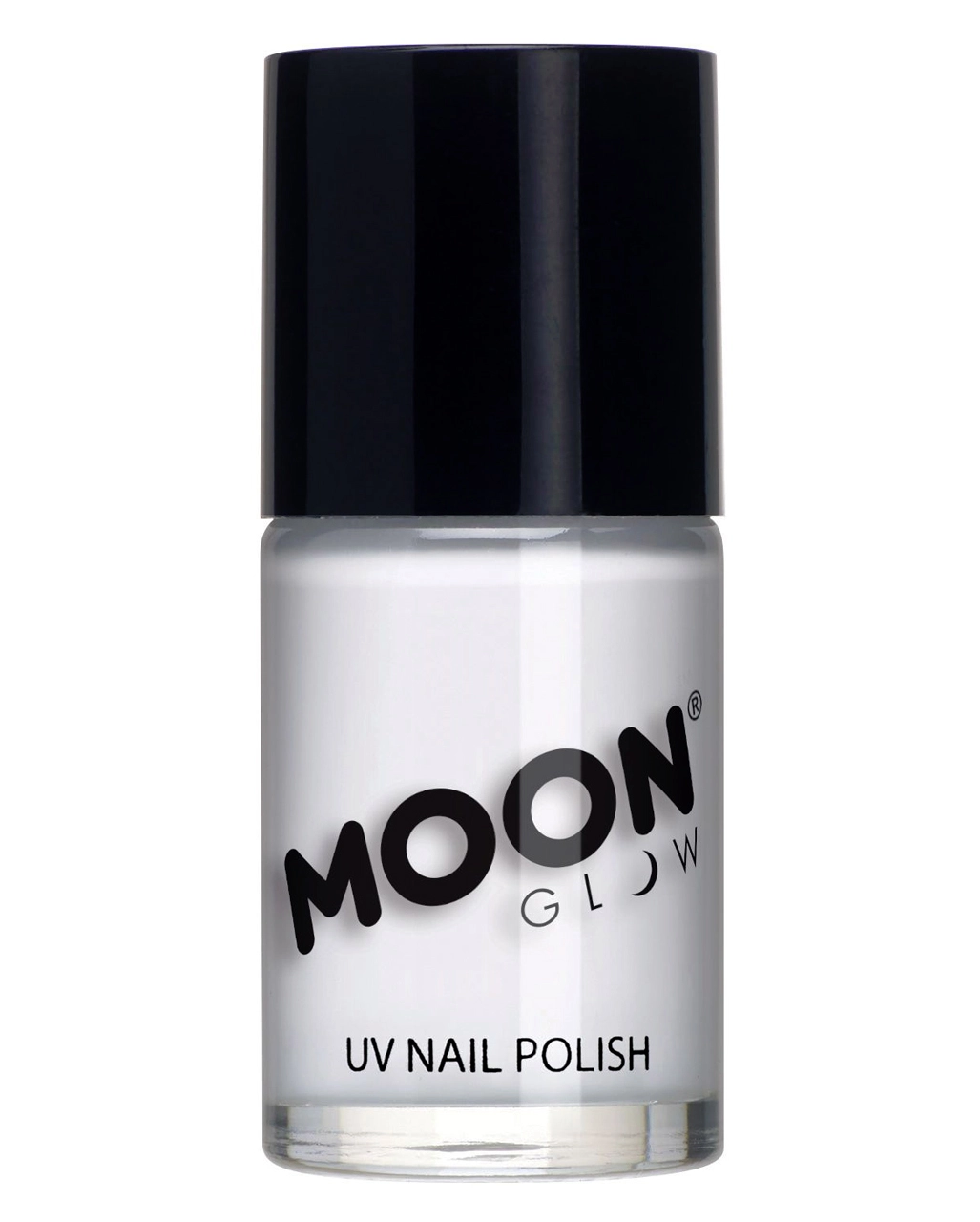 Professioneller, intensiver UV Nagellack Weiß als coole Fingernagel Farbe, die im UV-Licht & Schwarzlicht leuchtet. Der UV Nagellack in Weiß ist ein Hingucker für alle 80er Jahre, Bad Taste & Schwarzlicht Mottoparty Kostüme.