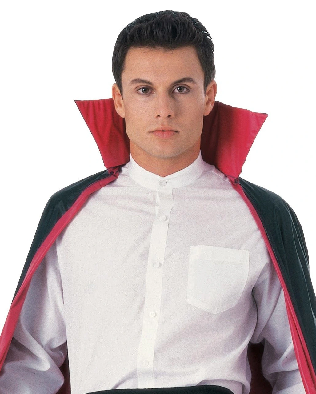 Mit unserem schwarz-roten Vampir Umhang wird dein Dracula Kostüm perfekt. Das Cape ist ein knielanger Umhang, der in den Farben schwarz und rot gehalten ist. Mit dem Wendeumhang kann jeder eingefleischte Vampir selbst entscheiden ob er die rote oder die schwarze Seite nach außen trägt. Um den klassischen Vorlagen aus Film und Fernsehen zu entsprechen, besitzt das Cape einen stabilen Stehkragen. Kombiniere dein Dracula Kostüm mit unseren Vampir Zähne economy.