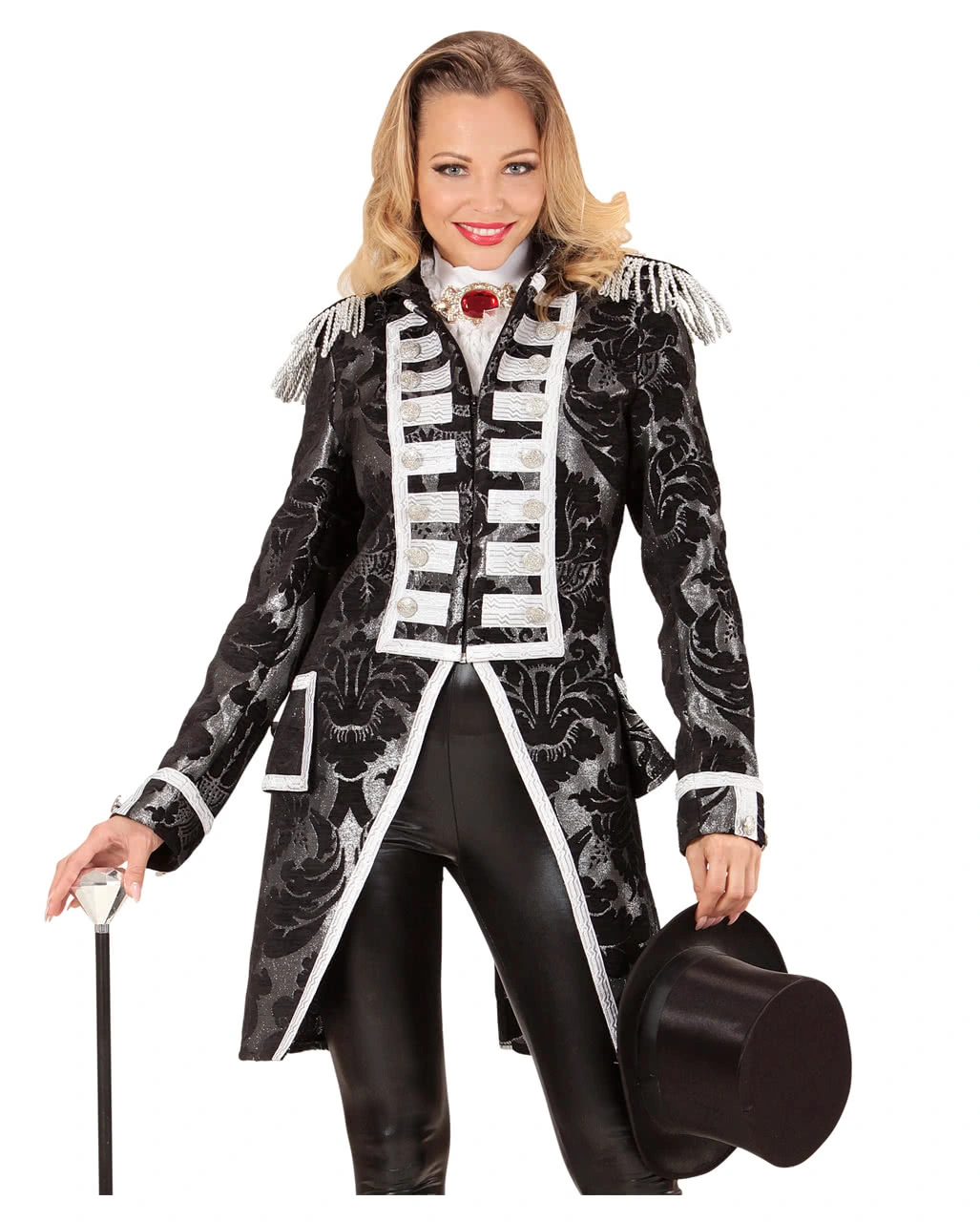 Mit unserem venezianischen Damenfrack in Silber und Schwarz kannst du ideal unterschiedliche Verkleidungen gestalten. Ganz gleich ob du einen gefeierten Rockstar, eine tapfere Piratin, eine geheimnisvolle Gothic Gräfin oder ein Musketier darstellen willst, die schwarz-silberne Brokat Jacke mit Schulterklappen ist das perfekte Mix & Match Kostüm!