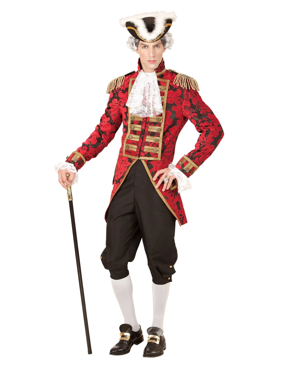 Mit einem venezianischen Frack als Kostümzubehör gestaltest du gleich mehrere Verkleidungen und verleihst diesen dabei eleganten Schick und ein historisches Aussehen. Ganz gleich, ob du mit dem venezianischen Frack einen Gothic Graf, Piraten oder Edelmann aus dem Barock bzw. Rokoko Zeitalter darstellen willst, der rot-schwarze Frack mit Goldborte und Schulterklappen ist das perfekte Mix & Match Kostüm.